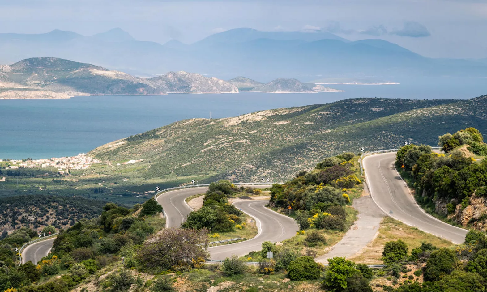 Entre Corinthe et Nauplie, la route alterne entre sections roulantes et passages plus sinueux. On traverse des zones agricoles, des petits ports, des villages où le temps semble ralentir. Ce n’est pas la portion la plus spectaculaire du Péloponnèse, mais elle joue un rôle essentiel : elle installe le rythme.